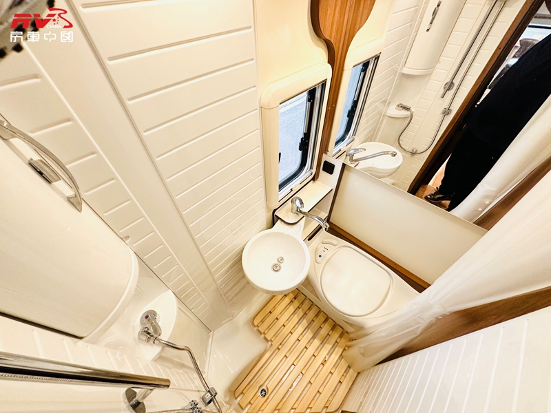 水路配置:保温330L清水箱、80L保温灰水箱、90L保温黑水箱、智能马桶、燃油加热器。